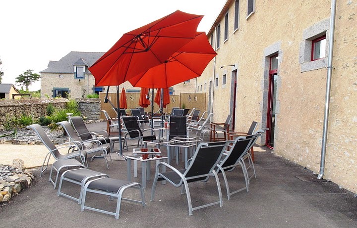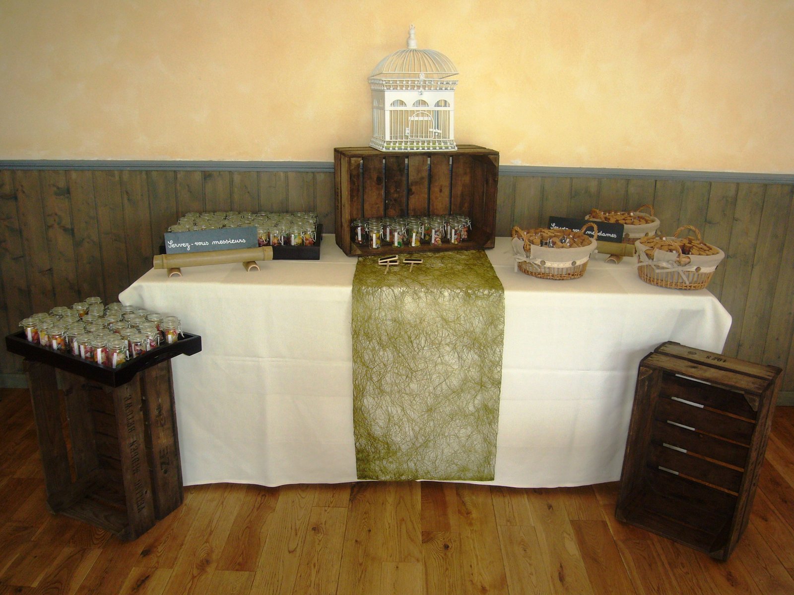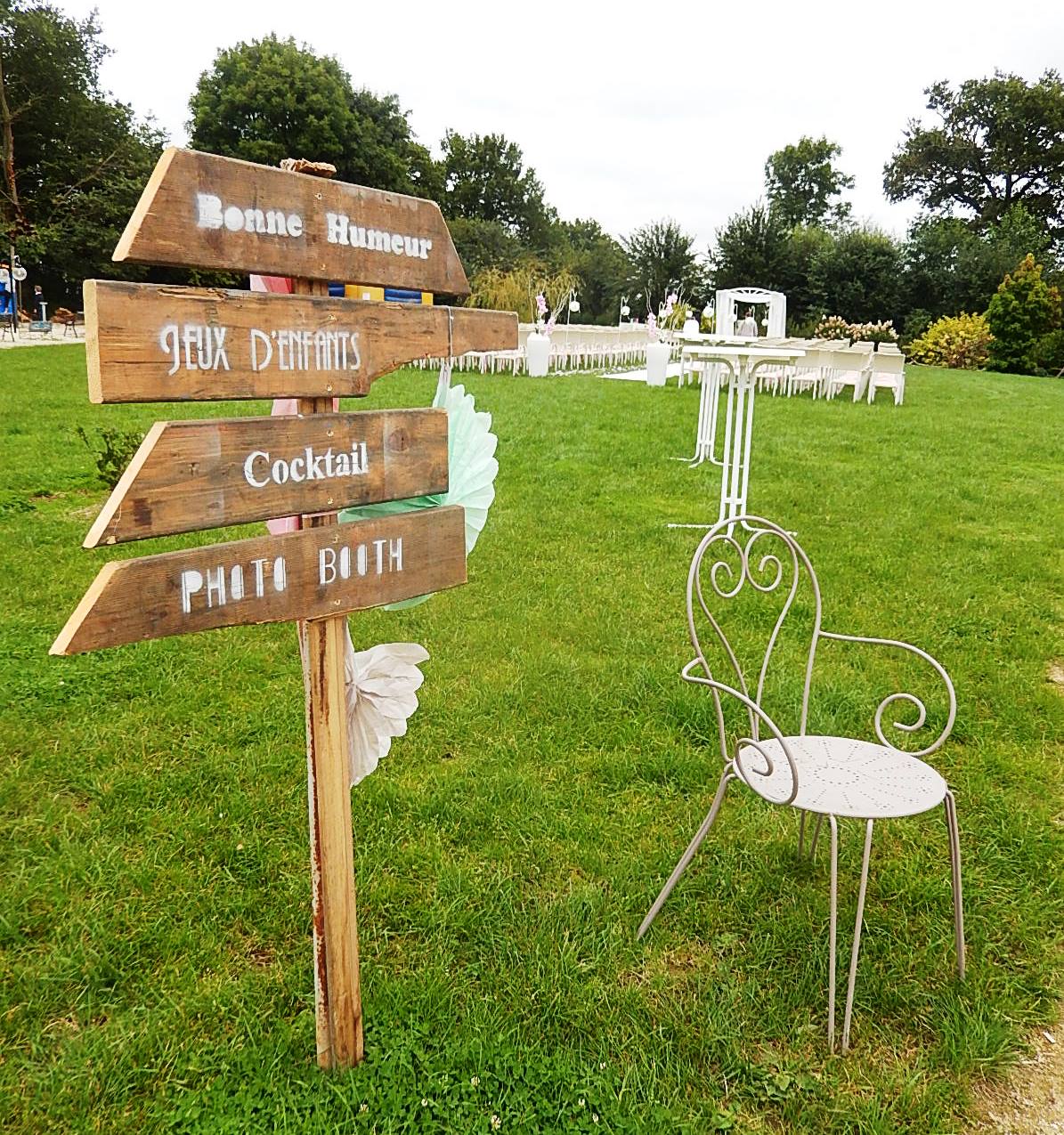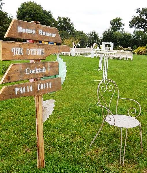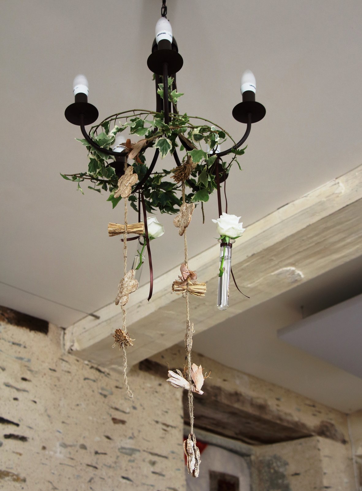 Aménagée dans une ancienne longère, la salle de réception a conservé le charme des poutres et des murs en pierres apparentes.