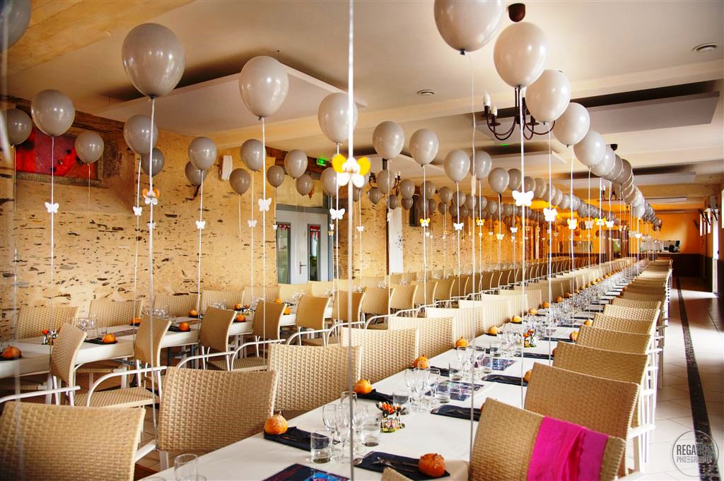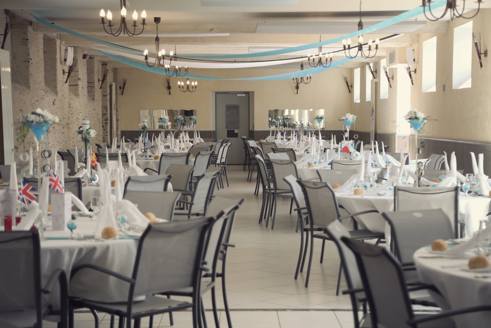 D’une superficie de 240m², la salle permet d'accueillir jusqu'à 200 places assises. Nous vous proposons un espace restauration carrelé de 160m², prolongé d'une piste de danse parquetée de 80m².