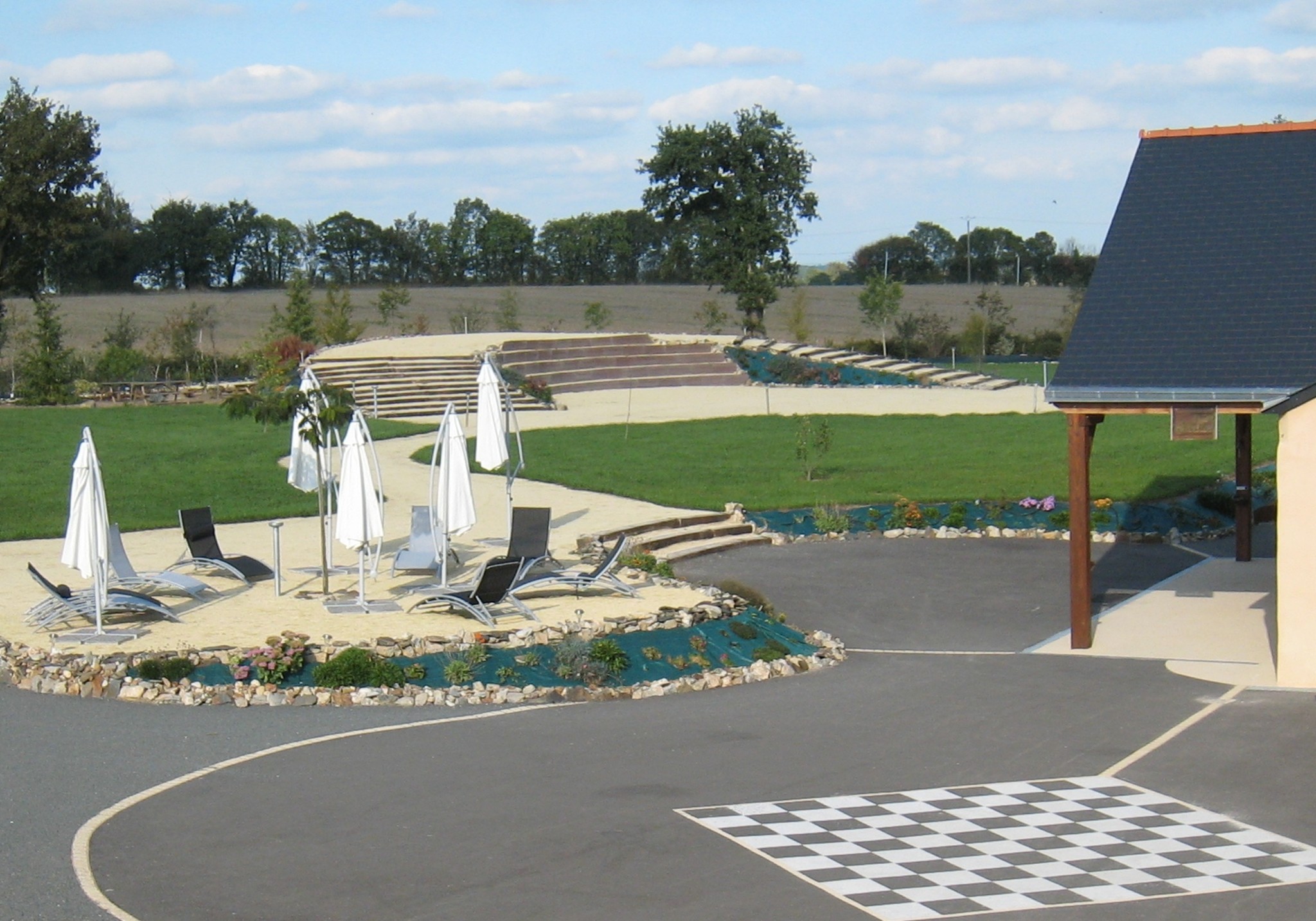 En suivant l’allée qui délimite le parc, vous passerez successivement à côté de l’aire de jeux pour enfants, puis le long de l’espace boisé, au sein duquel vous pourrez emprunter un petit pont de bois… et vous pourrez terminer votre balade en gravissant les marches du théâtre de verdure, pour découvrir en direction du nord-est, si le temps est dégagé, le point culminant de la Mayenne (le mont des Avaloirs - 416 mètres).